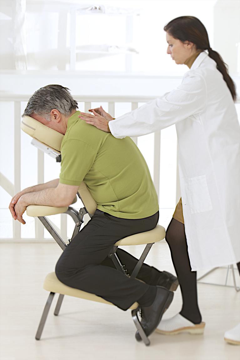 Assis dans une position confortable sur une chaise ergonomique en exposant au masseur la partie haute de votre corps, vous vous sentez détendu en quelques minutes. Tête, nuque, épaules, bras, mains, dos et hanches sont travaillés à travers vos vêtements.